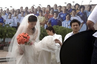 Newlywed pose with soccer stars (newsphoto/AP) Updated: 2006-06-12 16:24