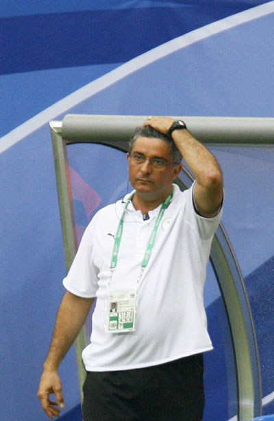 Saudi Arabia coach Marcos Paqueta watches his players during their Group H World Cup 2006 soccer match against Ukraine in Hamburg June 19, 2006. [Reuters]
