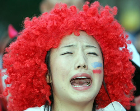 A fan reacts in Seoul early June 24, 2006, after the South Korean national soccer team's World Cup match against Switzerland in Germany. [Reuters]