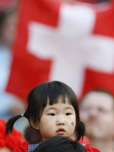 A fan waits before the Group G World Cup 2006 soccer match between Switzerland and South Korea in Hanover June 23, 2006. [Reuters]