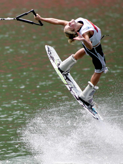 Water Skiing World Cup rang down the curtain in Beijing on June 25,2006.A female water skier of U.S. competes during the competition.[Xinhua]