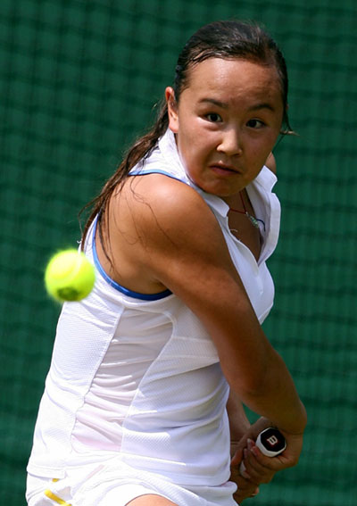 China's Peng Shuai plays a shot to Israel's Shahar Peer during their match at the Wimbledon tennis championships in London June 29, 2006.[Reuters]