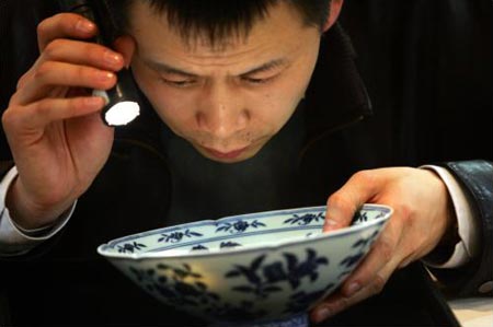 Photo selections from Oriental Morning Post (www.szjzcy.com) Updated: 2006-07-03 14:37 A visitor looks at an antique porcelain produced during the Ming