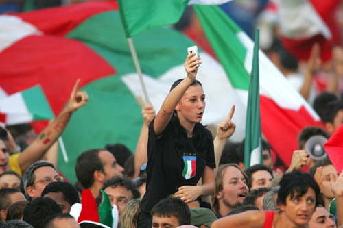 Italian fans gathered in Circus Maximus, one of ancient Rome's most famous stadiums, July 10, 2006, to celebrate their soccer team's World Cup 2006 victory in Germany.[Reuters]