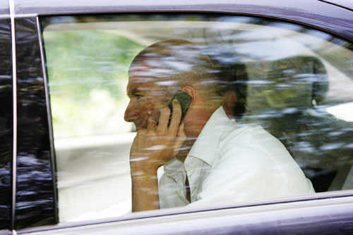 Zidane talks on his mobile phone as he leaves the FIFA headquarters in Zurich