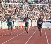 Prix in Stockholm, Sweden July 25, 2006. The other runners are Xavier Carter of