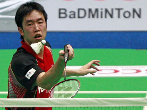 compatriot Chen Jin (not pictured) at the Thailand Open men's badminton finals