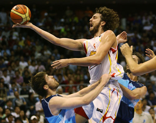 Argentina defence as he shoots during the Philips Singapore Cup basketball