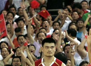 Yao Ming of China, center, is surrounded by greeting fans after the match