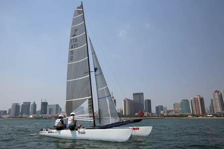 Competitors practice for the 2006 Qingdao International Regatta sailing