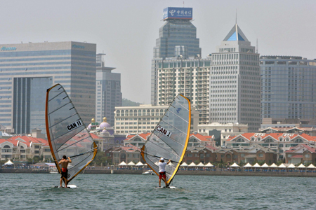 Competitors practice for the 2006 Qingdao International Regatta sailing