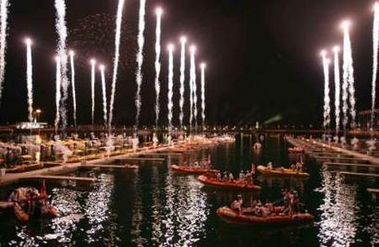 a bay during a display of fireworks during the opening ceremony of the 2006