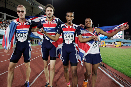 British relay team (L-R) Kris Robertson, Martyn Rooney, Grant Baker and Chris