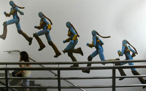 A girl walks past a wall decorated with cartoons in Guangzhou, South China's Guangdong Province July 31 2006.[Chen Hui]