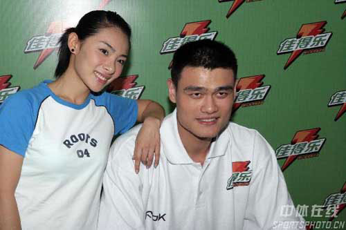 NBA star Yao Ming of China together with Olympic gold medal-winning gymnast