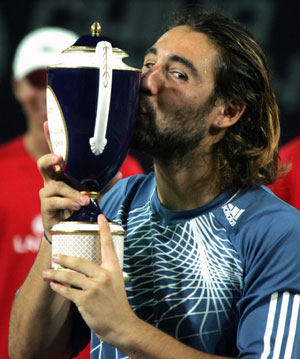 China Open:Baghdatis wins 1st ATP title (Reuters) Updated: 2006-09-18 09:33  Marcos Baghdatis of Cyprus kisses the China Open trophy during