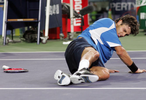 China Open:Baghdatis wins 1st ATP title (Reuters) Updated: 2006-09-18 09:33  Mario Ancic of Croatia tumbles during his final match against