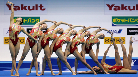 routine at the FINA Synchronised Swimming World Cup in Yokohama, south of Tokyo,