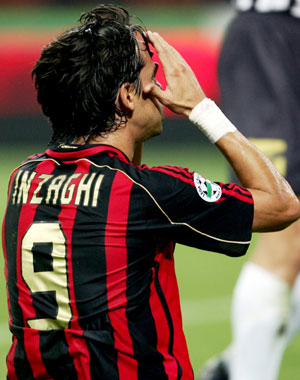 AC Milan wins in Serie A (Reuters) Updated: 2006-09-21 13:45  AC Milan's Filippo Inzaghi reacts during the match against