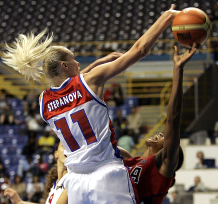 Women's basketball worlds (Reuters) Updated: 2006-09-22 09:45  Russia's Maria Stepanova (L) tries to stop Tamika Catchings of