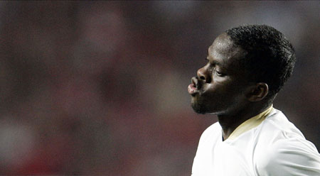 Manchester United's Louis Saha celebrates his goal against Benfica during