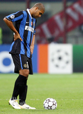 Inter Milan forward Adriano of Brazil looks at the pitch after a Champions League Group B soccer match against Bayern Munich in Milan September 27, 2006. [Reuters]
