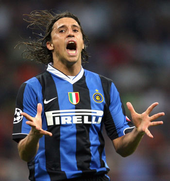 Inter Milan forward Hernan Crespo of Argentina reacts during a Champions League Group B soccer match against Bayern Munich in Milan September 27, 2006. [Reuters]