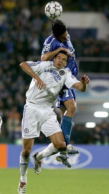 Chelsea's Michael Ballack (front) fights for the ball with Levski Sofia's