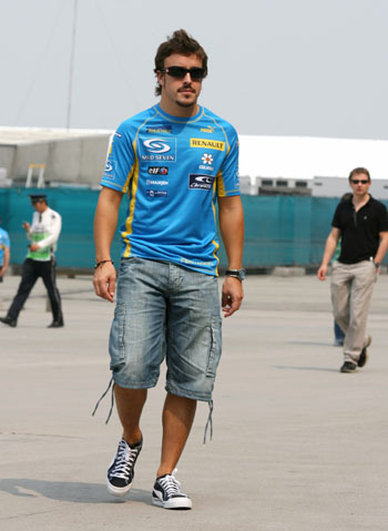Renault's Formula One driver Fernando Alonso of Spain walks at the Shanghai