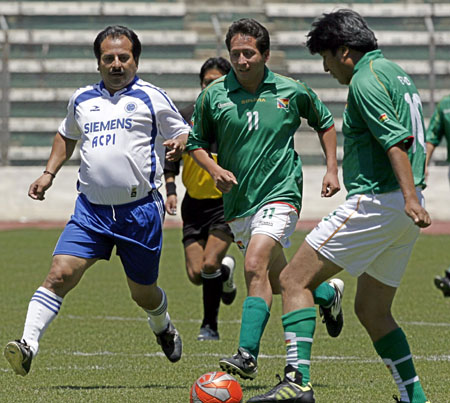 Bolivian President attends football match againt press staff (Reuters) Updated: 2006-10-05 16:25