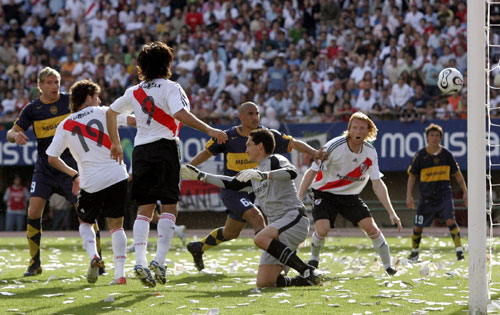 Boca Juniors VS.River Plate (Reuters) Updated: 2006-10-09 08:59  River Plate's Gonzalo Higuain (19) kicks the ball past Boca