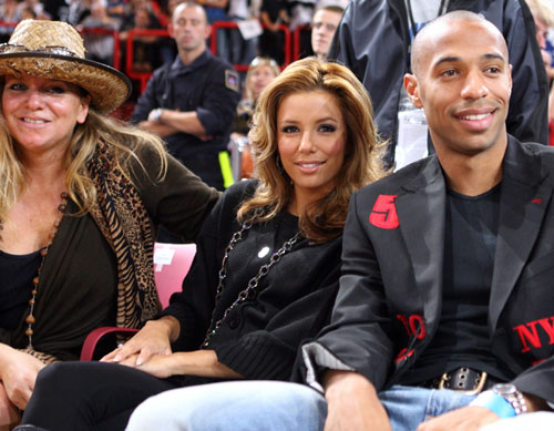 Thierry Henry and San Antonio Spurs' Tony Parker's mother Pamela Firestone (L)