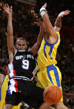 Tony Parker during their NBA live tour match at the Paris Bercy stadium, October
