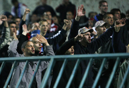 Slovakia fans shout against Germany fans during the Euro 2008 Group D