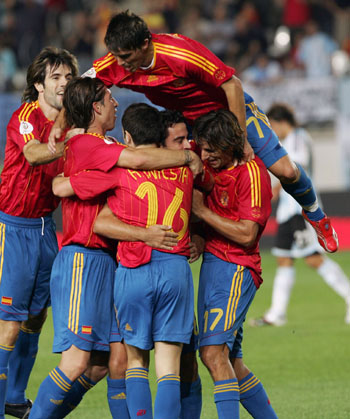 Albelda, Sergio Ramos, Andres Iniesta, David Villa (top) and Miguel Angel Angulo