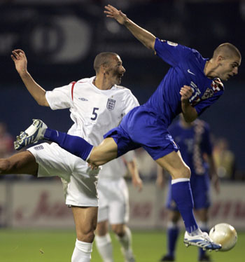 Ferdinand during their Euro 2008 Group E qualifying soccer match at the Maksimir
