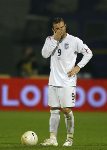 England's Wayne Rooney reacts after Croatia's second goal during their Euro