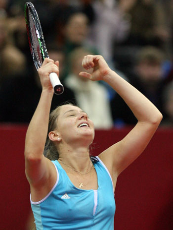 Russia's Anna Chakvetadze celebrates her victory over compatriot Nadia Petrova in their final match at the Kremlin Cup tennis tournament in Moscow October 15, 2006. [Reuters]