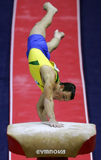 Brazil's Diego Hypolito competes on the vault during the Artistic Gymnastics World Championships in Aarhus, Denmark, October 15, 2006. [Reuters]