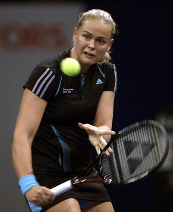 Hingis during their first round match of the WTA Zurich Open tennis tournament