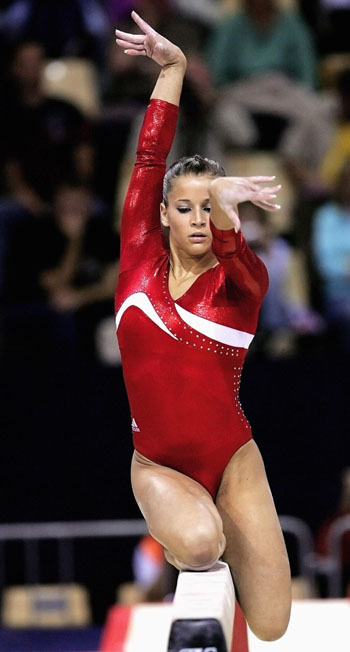 Alicia Sacramone of the U.S. competes on the beam