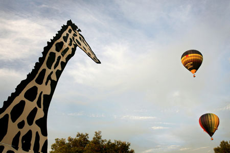 Hot-air balloons float during the start of Regatta Cala Millor in the village of Cala Millor on the Spanish island of Mallorca October 24, 2006. [Retuers]