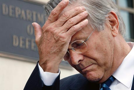 puts his hand to his head as he and Iraqi Deputy President Adil Abdul Mahdi