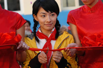 ribbon at the opening ceremony of the Xing Huina Hope Elementary School at