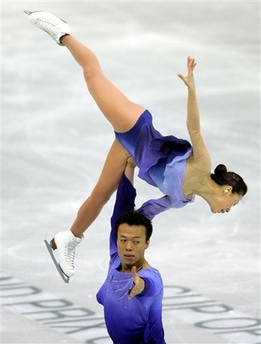 China's Shen Xue, top, and Zhao Hongbo perform during the Pairs Free Skating at the ISU Grand Prix of Figure Skating Cup of China in Nanjing, in China's eastern Jiangsu province Friday Nov. 10, 2006. The two won the pairs competition. [AP/Xinhua]