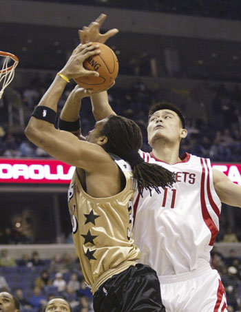 block a shot by Washington Wizards' Etan Thomas during the first quarter of