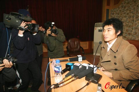 Zheng Zhi, a footballer from China's Super League champions Shandong Luneng club speaks to the media during a press conference in Jinan, East China's Shandong Province December 29, 2006. Zheng Zhi has been loaned to the England Premiership side Charlton Athletics till May 20, 2007. Charlton is on the brink of relegation. [sina.com]