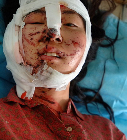 A man injured in an explosion at an Internet bar receives treatment at a hospital in Hefei, East China's Anhui Province, May 6, 2006. Explosions at two Internet bars killed two and injured three in Hefei May 5, 2006. [Wu Fang/Xin'an Evening News]