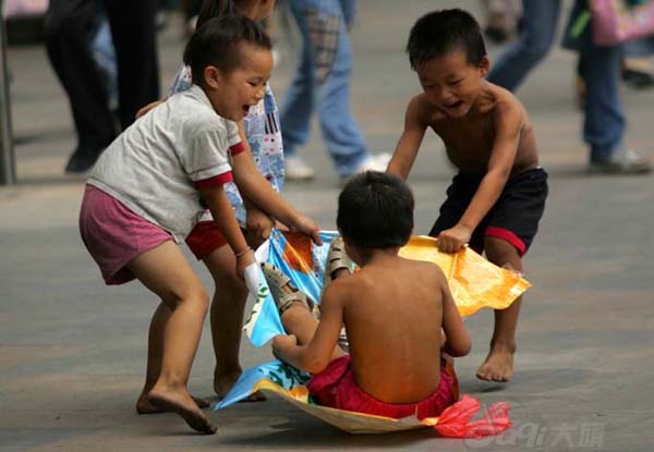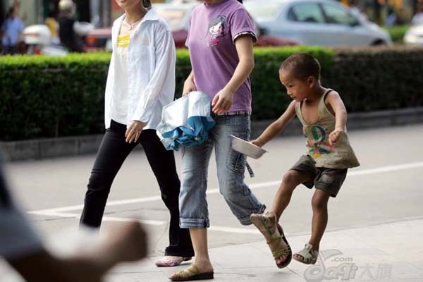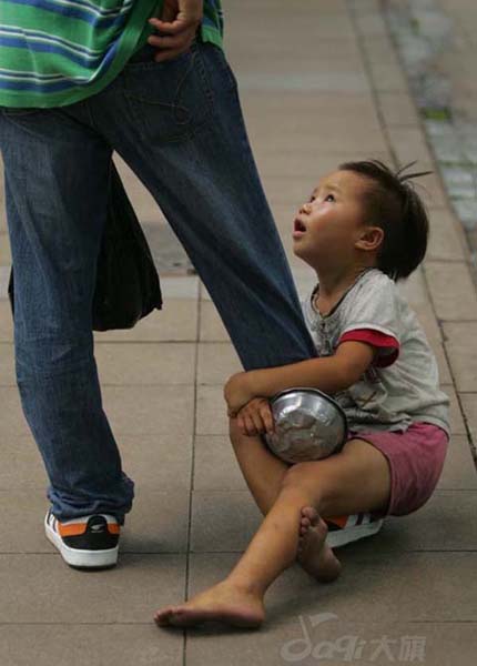 Guo Jijiang's special care for the common people(www.szjzcy.com)Updated: 2007-02-13 16:48 These photos show some children forcefully begging for money from pedestrians in the Pearl River Delta. The young beggars are mostly children of poor migrant workers. At times they even assault pedestrians.
