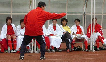 Wang Haiming, the deputy coach of the Chinese women's soccer team, is organizing the training course of the national team on Wednesday April 4, 2007, in Wuhan. The team is preparing for an upcoming match with an all-star team assembled of players from different countries. The match will be held on April 21, 2007. [Xinhua]